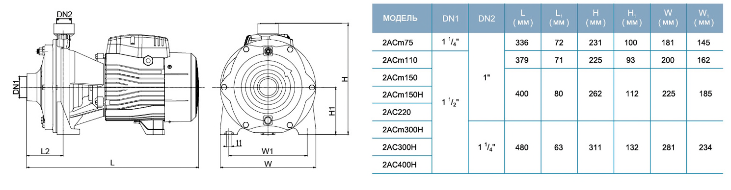 Высокопроизводительный центробежный двухступенчатый насос 2ACm300H предназначен для перекачивания чистой, не содержащей абразивных частиц (песка) воды из колодцев и емкостей.
